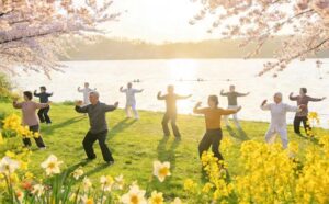 • 重复5次,这个动作能拉伸脊柱、疏通背部经络,配合揉腹和按穴,让气血从腹部“通”到全身,春困、腹胀一并化解。